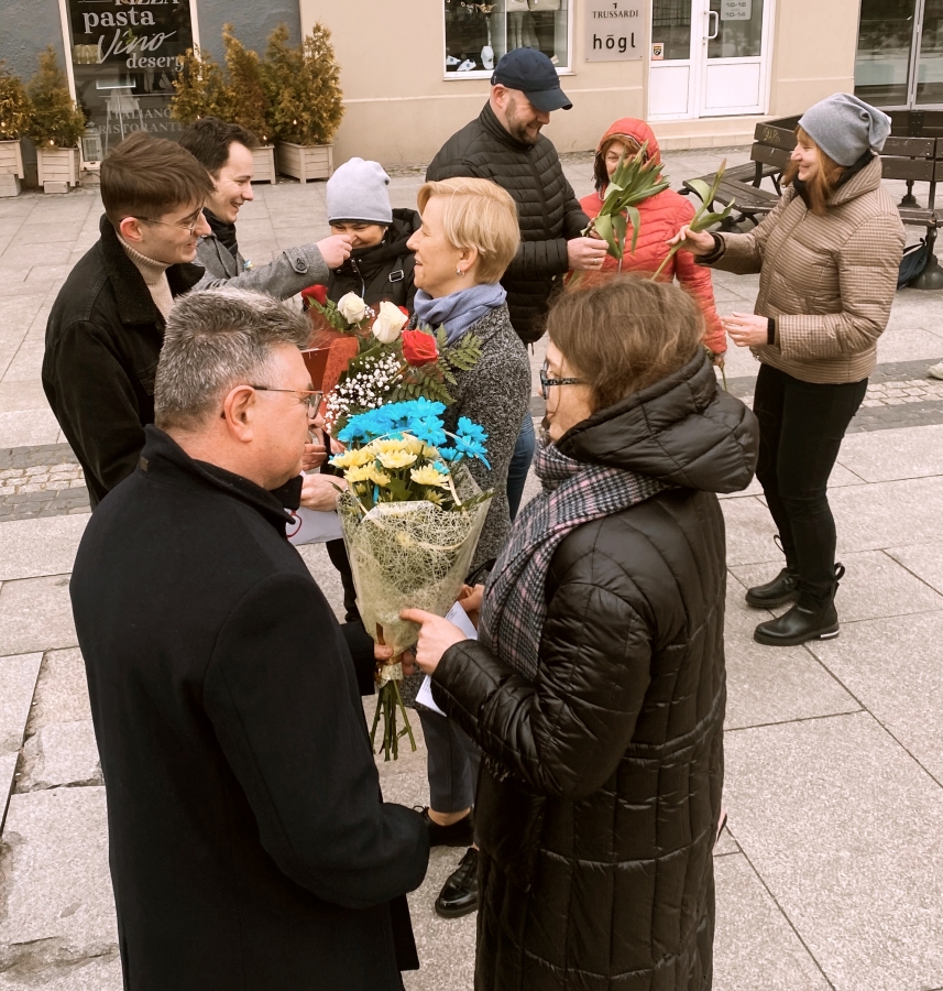 Po konferencji prasowej nie mogło zabraknąć również kwiatów dla Pań, wręczanych radomiankom w centrum miasta.