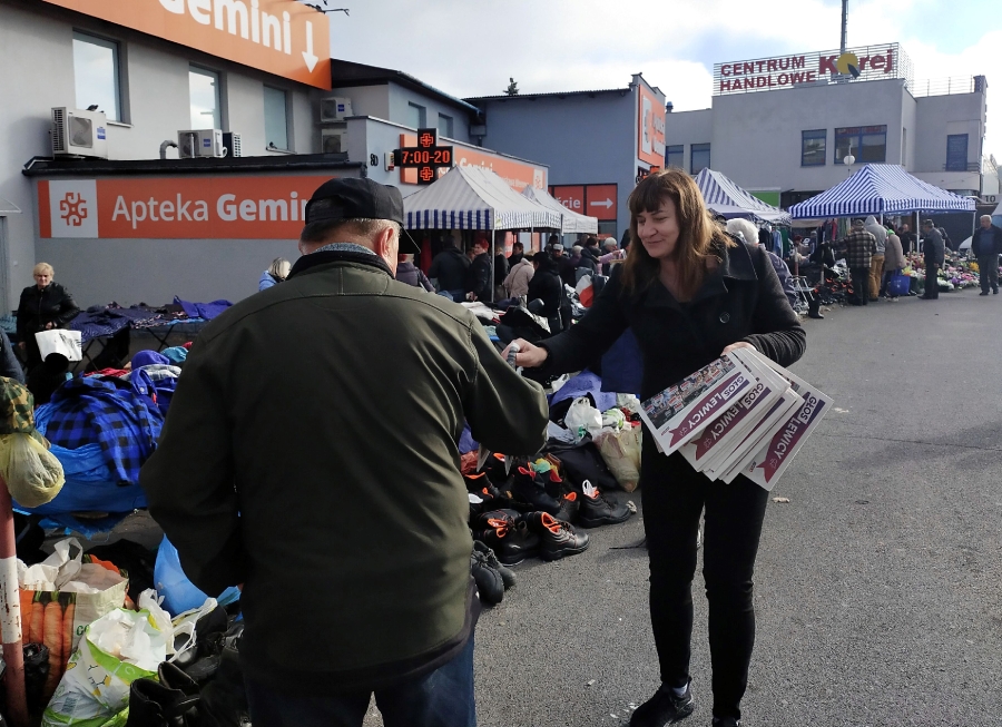 W rozmowie z mieszkańcem Radomia: Bogdan Barszczyński, Mirosław Ciura, Katarzyna DobrowolskaKatarzyna Dobrowolska w rozmowie z mieszkańcem RadomiaEwa Barszczyńska wręcza gazetę Małgorzata Ziemnicka wręcza ulotki oraz